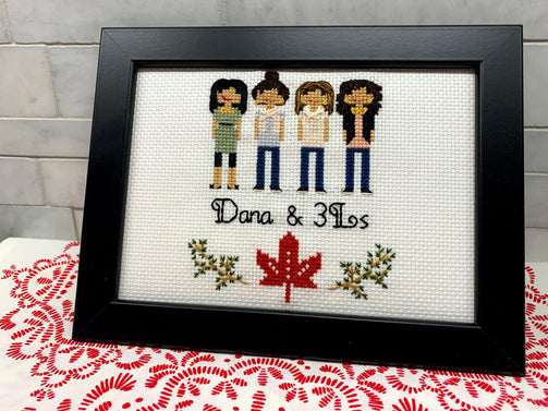After placing your order you will receive an email from me requesting photos of the characters for reference as well as a bit of additional information. Once I am done creating the pattern I will send it to you for approval before stitching the final piece (you only get ONE edit).