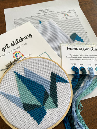 Dive into the world of cross stitch with this handcrafted Cross Stitch kit. This kit is based on an original Over the Rainbow Stitching pattern, and includes everything you need to complete a beautiful cross stitch project.